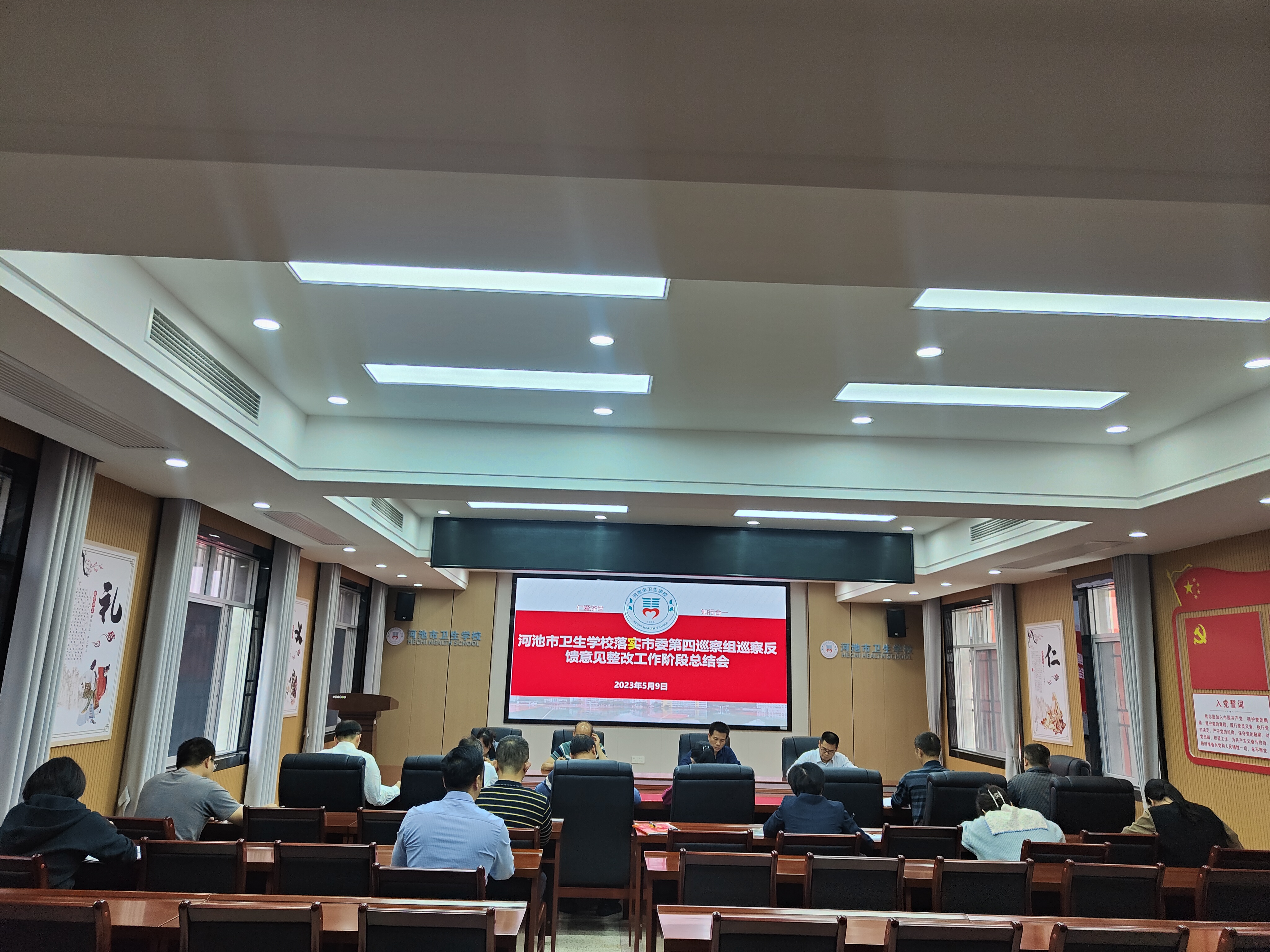 为进一步推进市委第四巡察组巡察反馈问题整改,确保巡查整改取得成效,2023年5月9日,河池市卫生学校党总支组织召开巡察整改工作阶段总结会。学校党总支书记、校长陈朝亮出席并讲话,学校党总支成员、各支部书记、支委以及各责任科室负责人参加会议。