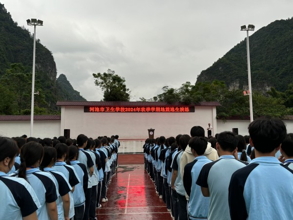 10月14日上午8时,河池市卫生学校开展2024年秋季学期地震逃生演练,学校全体师生共3000多人参加此次演练。
