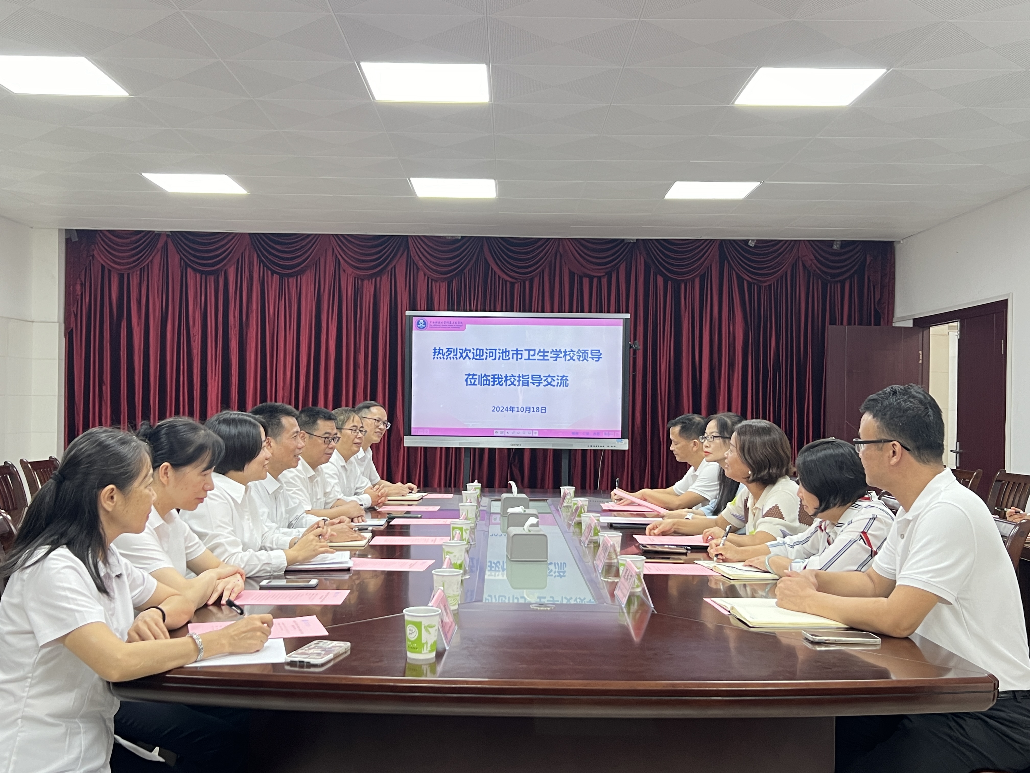 10月18日,河池市卫生学校党总支书记、校长陈朝亮率队一行8人前往广西科技大学附属卫生学校考察学习,广西科技大学附属卫生学校的班子成员及相关科室负责人给予了热情接待。