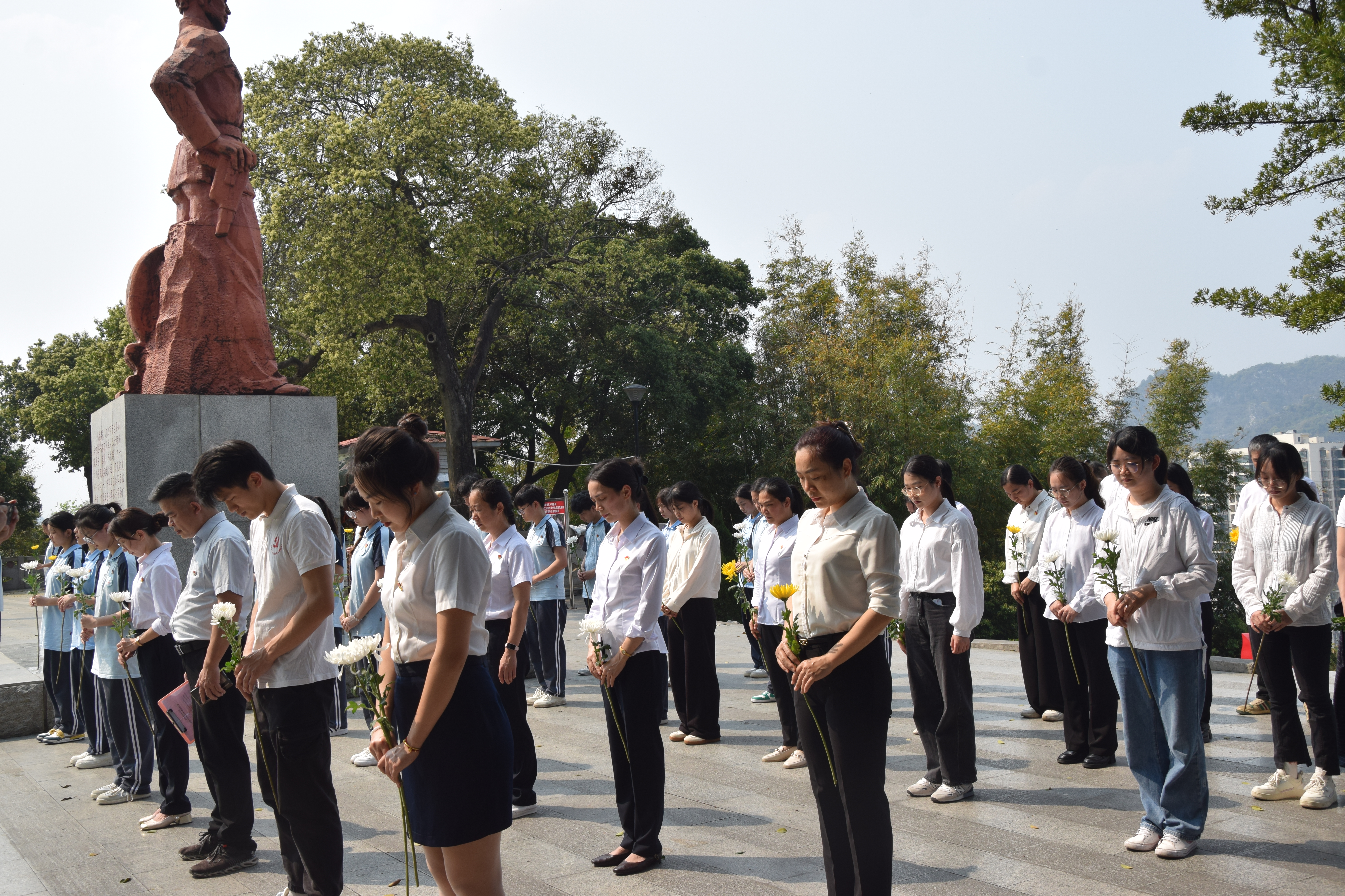 师生代表向烈士敬献花篮,所有人员有序地缓步绕纪念碑敬献菊花,表达对烈士的崇敬之情以及对祖国的无限热爱。