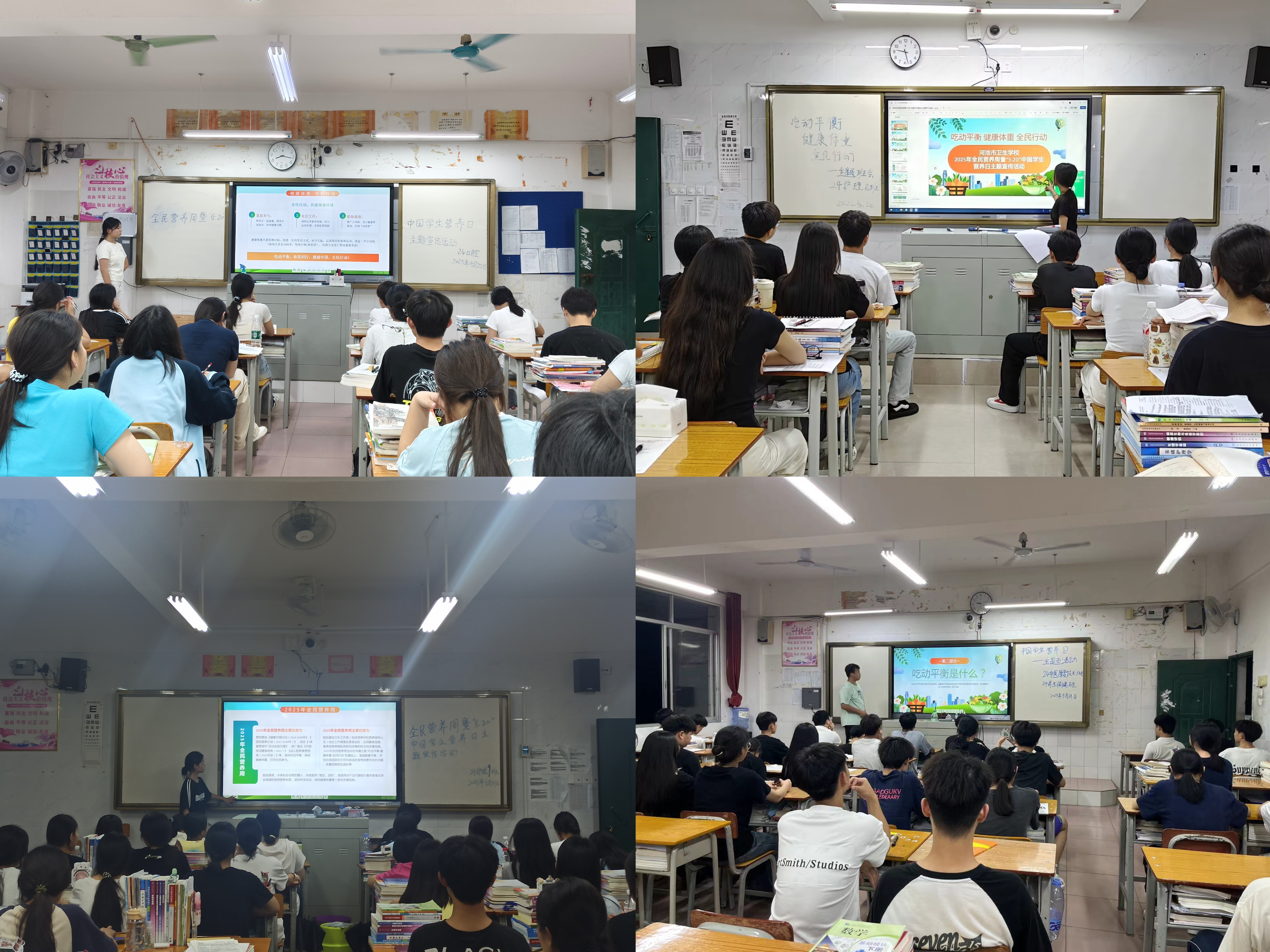 各班级通过沉浸式主题班会,以PPT讲解营养均衡、“三减”(减盐、减油、减糖)知识及吃动平衡方法。学生结合自身饮食习惯展开讨论,主动反思并表态优化饮食结构,现场互动氛围热烈。