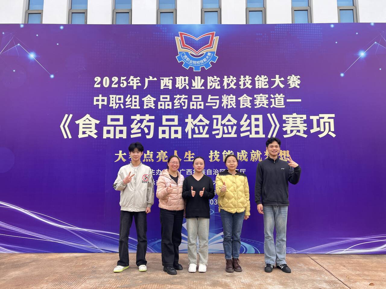 近日,2025年广西职业院校技能大赛圆满落幕,我校选派7支精英队伍参与5个赛项角逐,最终以1金4银2铜的优异成绩载誉而归!这一成绩充分彰显了我校师生精湛的专业技能与卓越的团队协作能力,为学校高质量发展再添新彩!