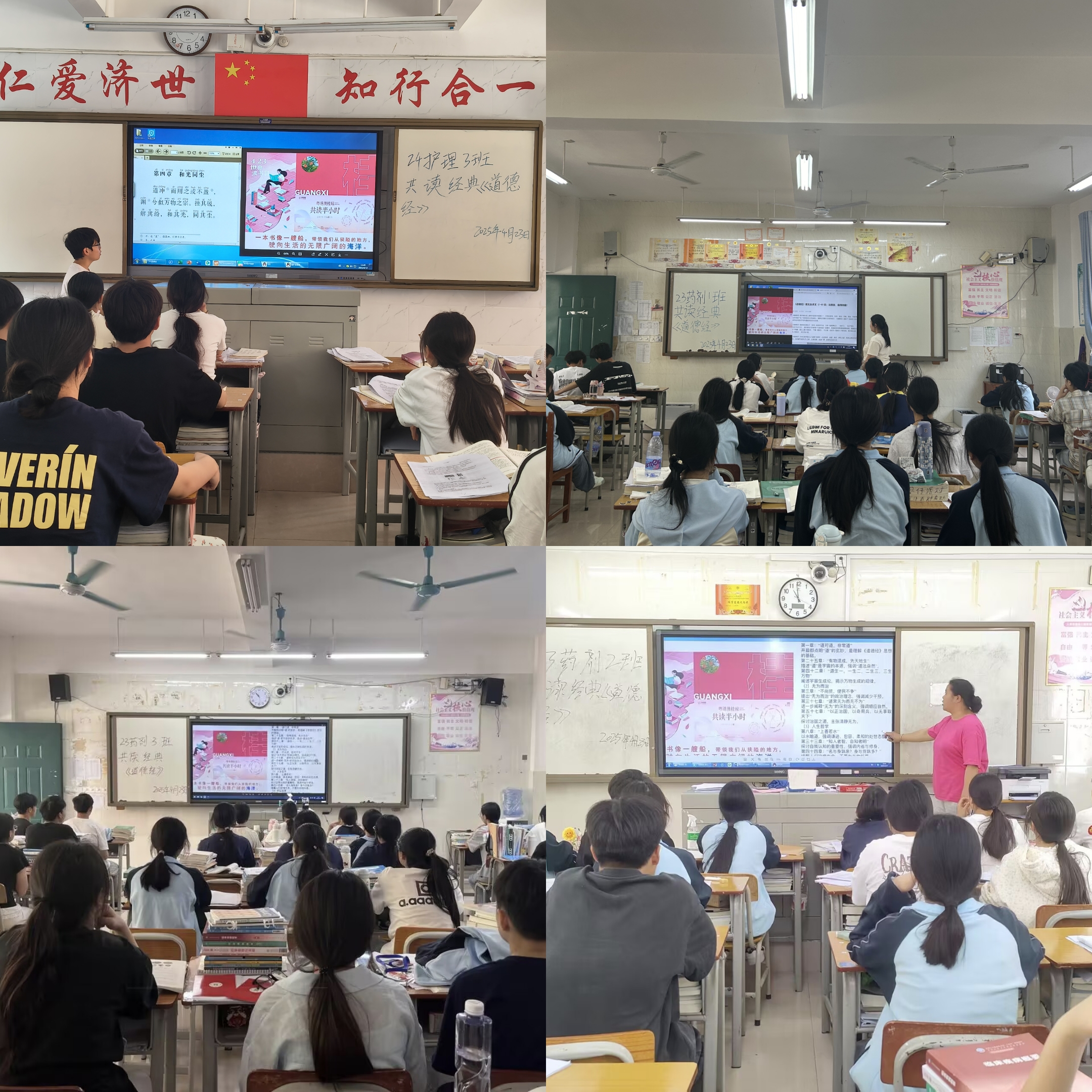 本次“千人共读《道德经》”活动,让同学们在感悟经典智慧的同时,进一步传承圣贤思想。在各班教室内,同学们整齐端坐,深情诵读《道德经》中的经典段落,声音洪亮而庄重,展现出对传统文化的深切敬仰与热爱。