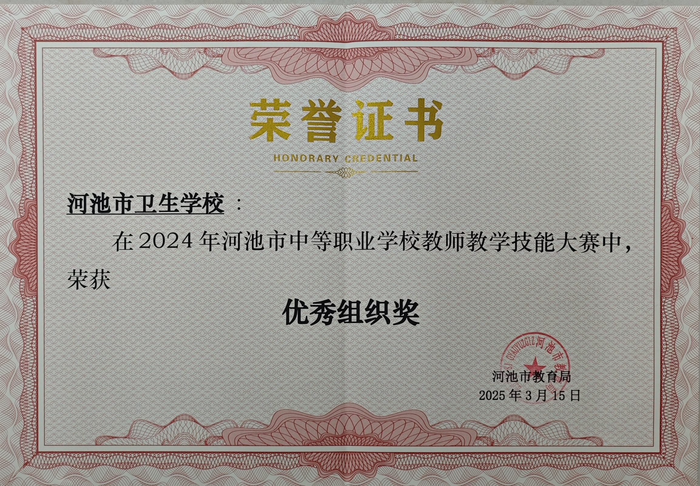 【上一篇】:2024年河池市中等职业技术学校教师教学技能大赛优秀组织奖-河池市教育局