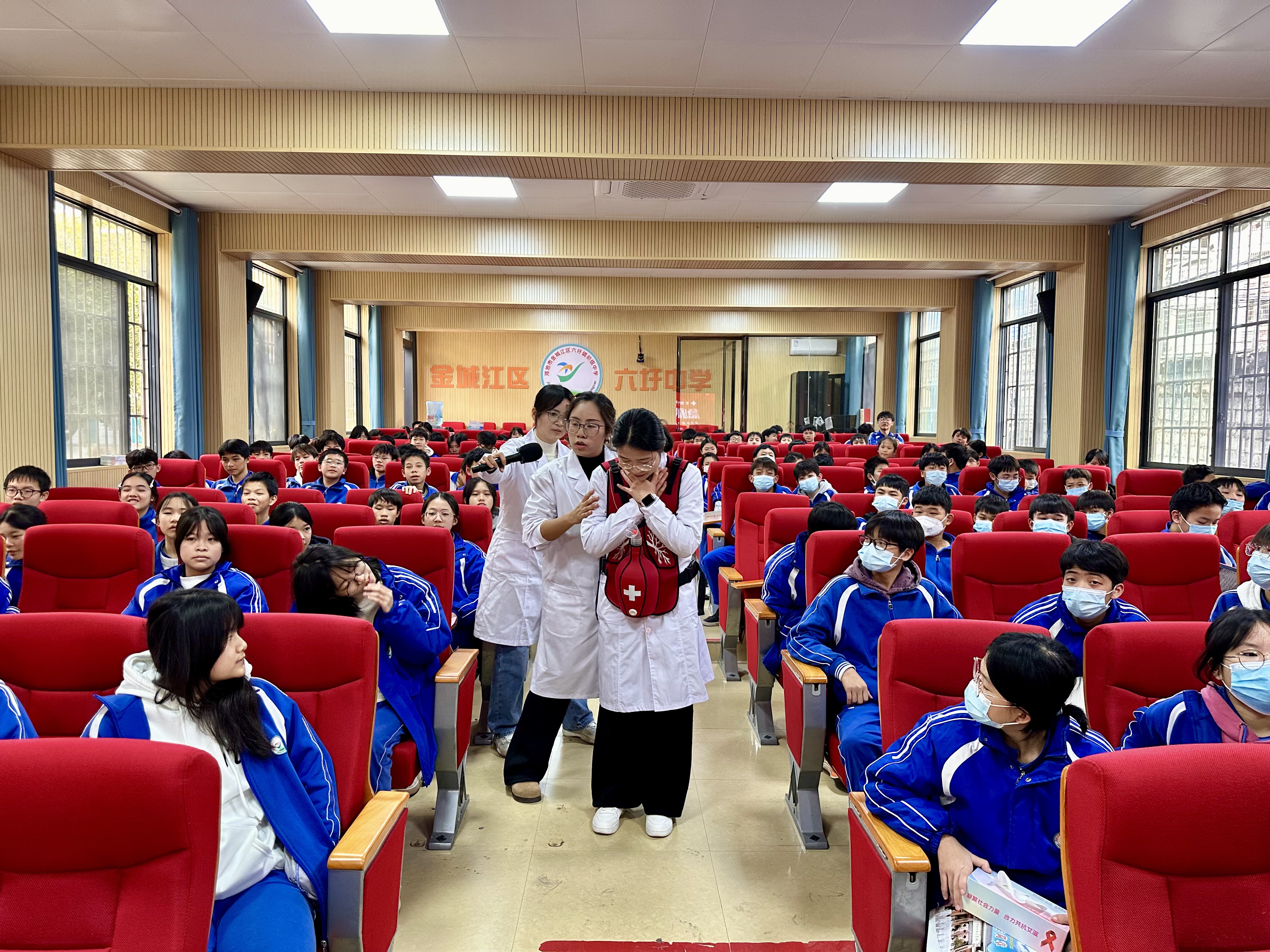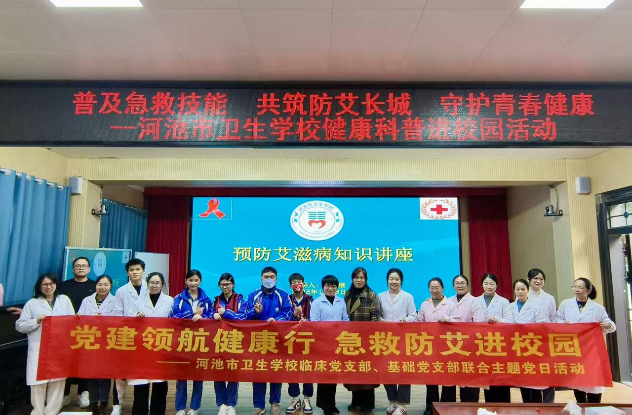 为充分发挥党建引领作用,扎实推进健康知识普及工作,守护青少年身心健康成长,近日河池市卫生学校组织基础党支部和临床党支部的党员教师队伍,走进河池市金城江区六圩镇初级中学开展健康科普进校园活动。本次活动以“普及急救技能,共筑防艾长城,守护青春健康”为科普主题,同时以“党建领航健康行,急救防艾进校园”为联合主题党日活动核心,通过专业授课与互动实践相结合的形式,为该校学生带来了一场兼具专业性与实用性的健康知识盛宴。
