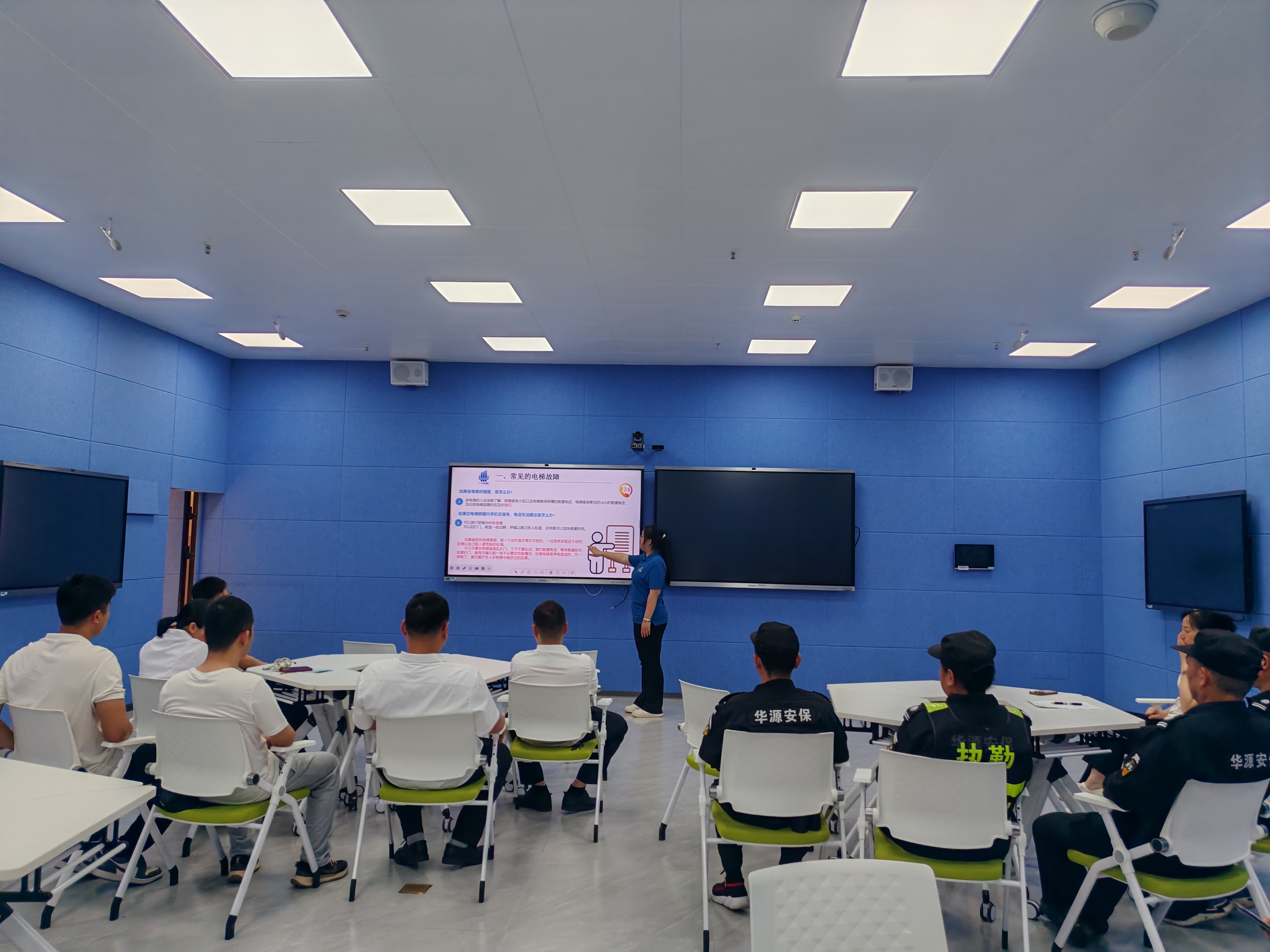 培训环节,总务科副科长李东东就活动意义与工作要求作动员讲话。电梯维保公司专业技术人员结合典型事故案例,系统讲解电梯工作原理、常见故障类型、应急处置流程及自救互救方法,重点纠正“扒门强行脱困”“在轿厢内剧烈跳动”等危险行为,引导师生树立科学避险、冷静等待、规范求救的安全意识。