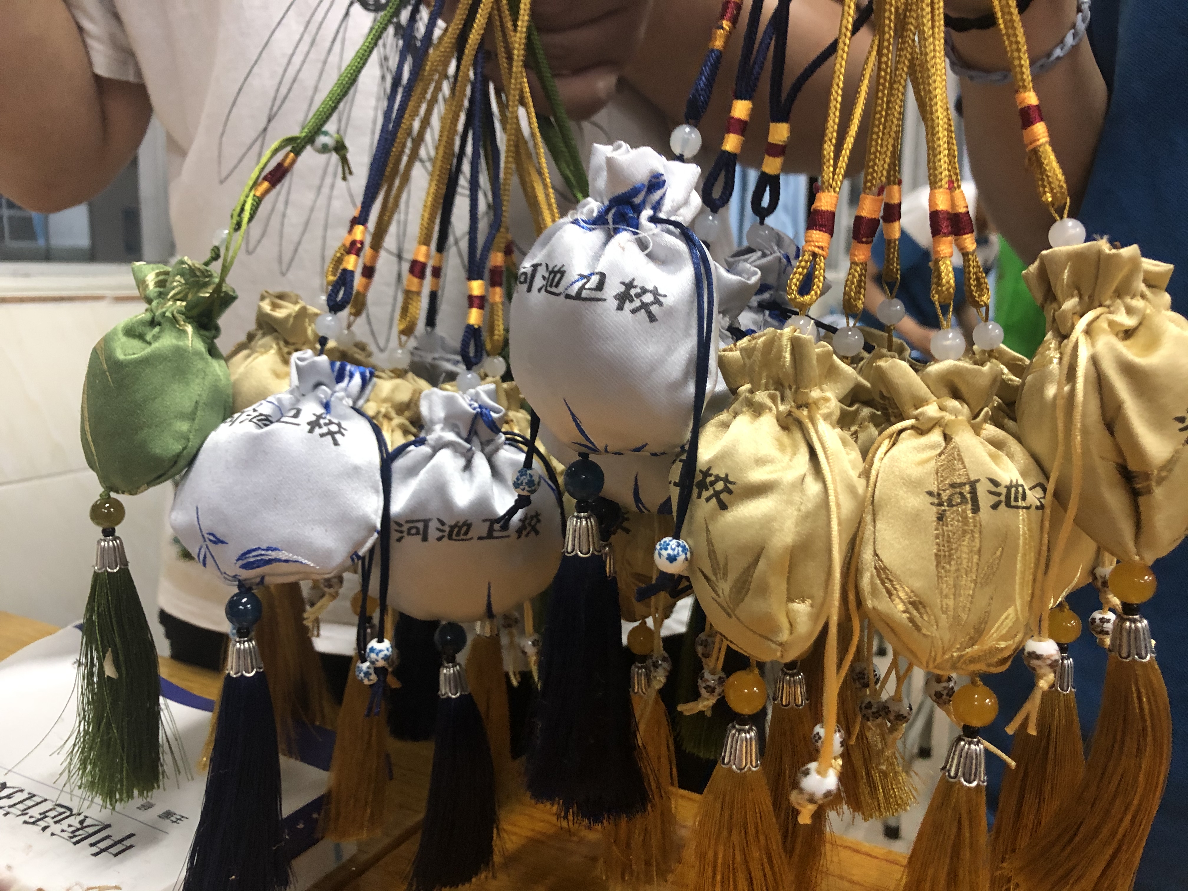 端午节习俗,传递的是文化,传递的更是感情。一个简单的香囊不仅增加传统节日的氛围感,更是有利于同学们增进友谊,丰富校园文化生活,营造端午节日的气氛。(李欣 覃贝)