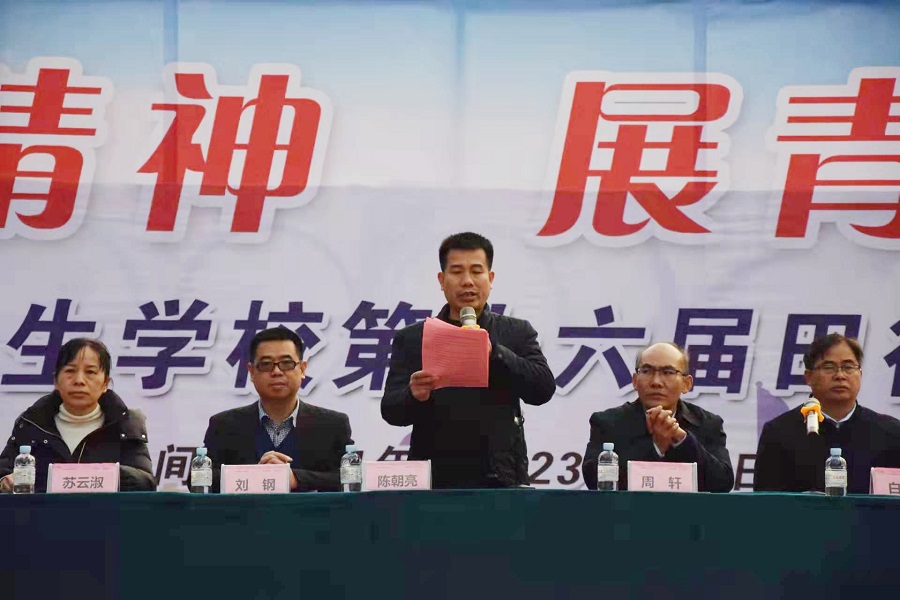 校长陈朝亮致开幕词,他用简短而热烈的话语,鼓励参赛的运动员赛出风格、赛出水平,对为校运会成功举办付出努力的师生表示感谢。运动员和裁判员分别做宣誓后,本届校运会正式拉开帷幕。