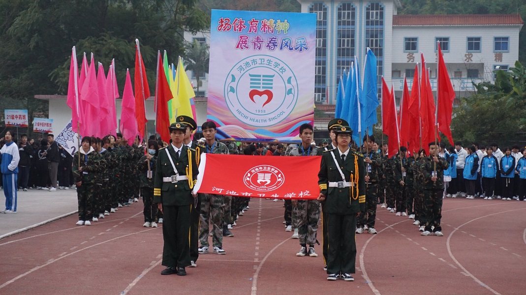 【石华 黄鸿宇 罗利婉】为全面贯彻党的教育方针,更好培养学生积极参与体育锻炼的习惯,丰富学校文化生活,提高学生的身体素质和运动技术水平,展现学生的精神风貌,河池市卫校于2021 年 12 月 23、24 日举办了第十六届学生田径运动会。