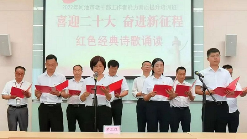 5月30日至6月2日,中共河池市委老干局在百色干部学院举办2022年河池市老干部工作者能力素质提升培训班。河池市卫校退休党支部书记石华与来自河池市县(区)党委老干部局和市直单位老干部工作人员、离退休干部党支部联络员共40余人参加了培训。