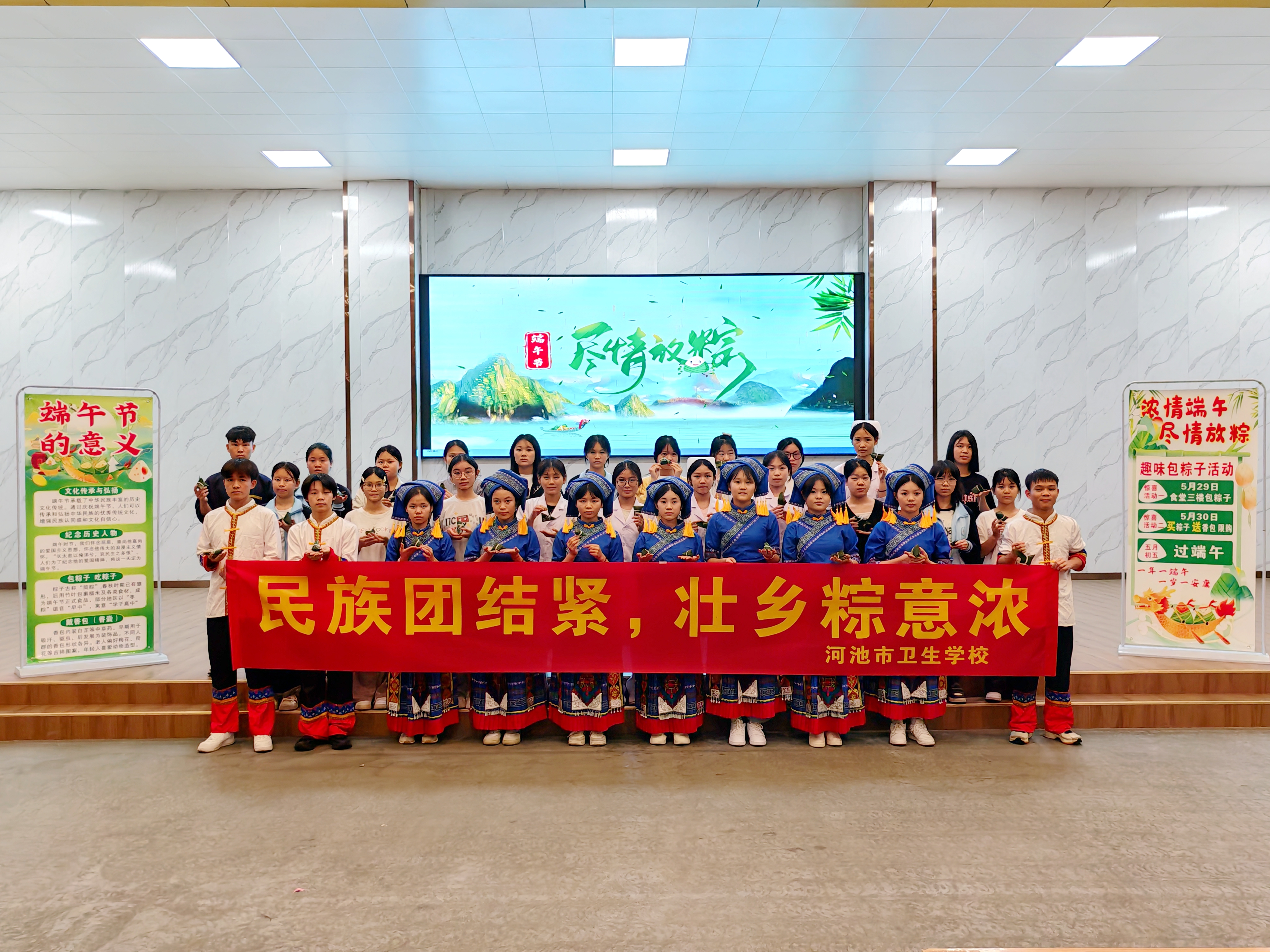 2025-06-09五月粽香沁校园,民族团结谱新篇。5月29日,河池市卫生学校食堂三楼洋溢着欢声笑语,一场以“民族团结紧,壮乡粽意浓”为主题的传统文化体验活动在此展开。来自壮族、…